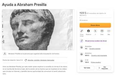 En el sitio de GoFoundMe, dónde abrió una cuenta para recaudar 380 mil dólares, que en pesos mexicanos son alrededor de 6 millones 384 mil, explicó que el día de la marcha, la situación se "comenzó a tensar" cuando un grupo de manifestantes le gritaban "fuera hombres".