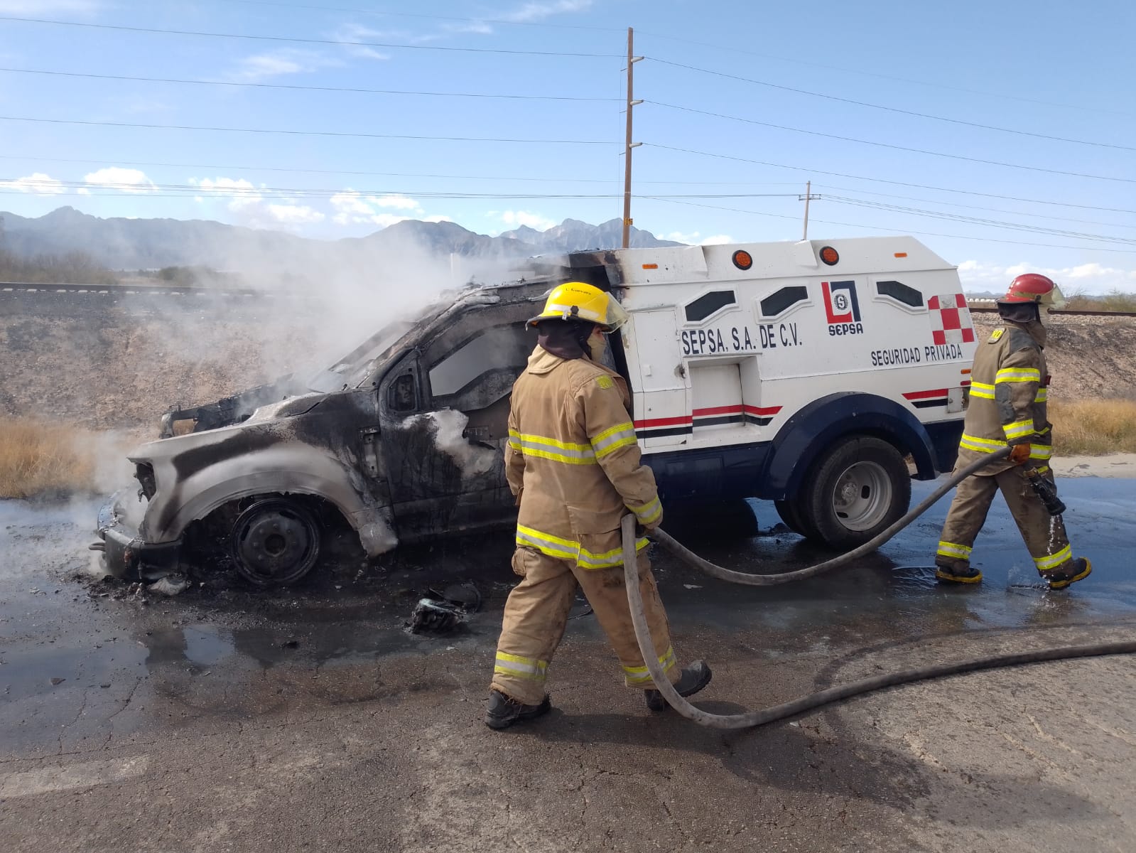 Se incendia camioneta de valores a la altura del ejido Brittingham de Gómez Palacio