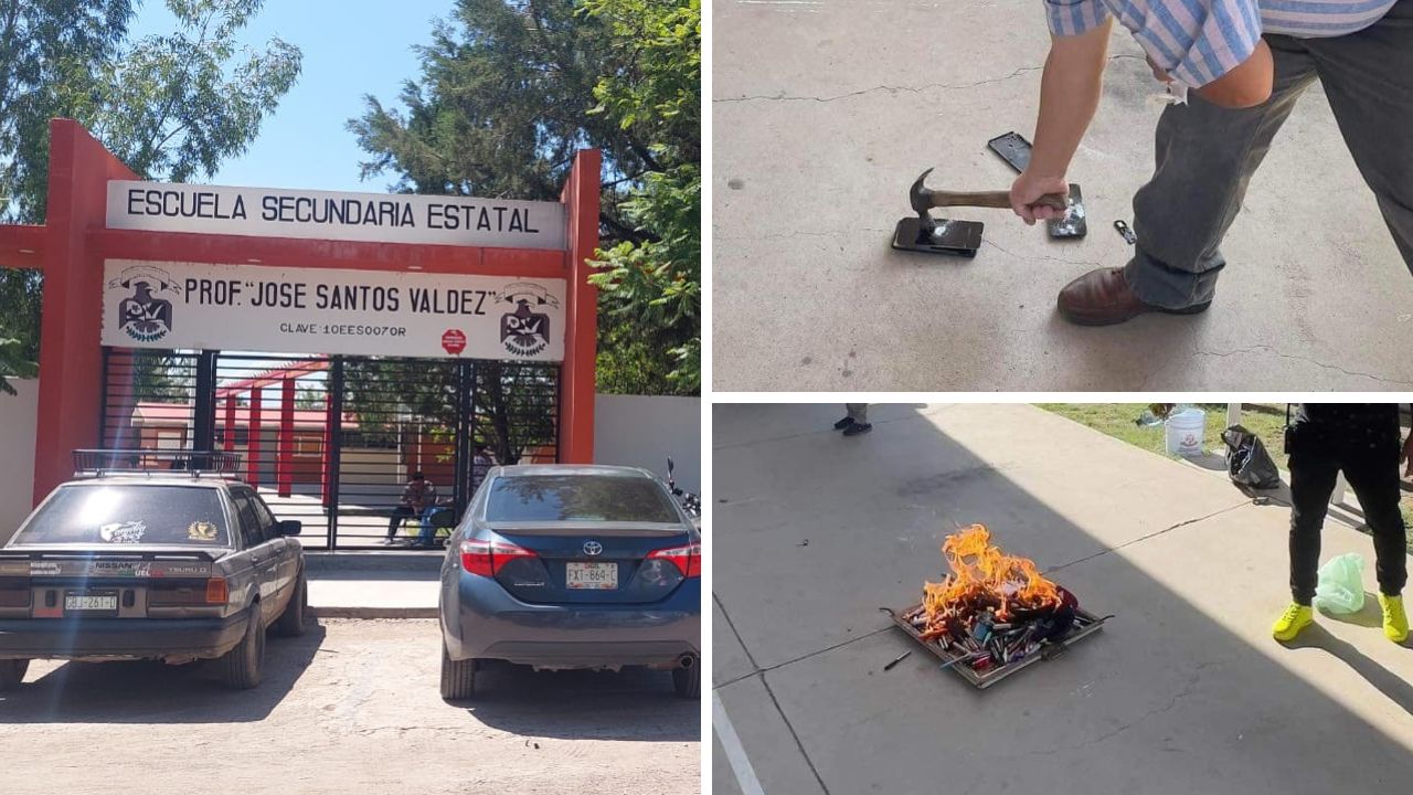 Sí se destruyen y queman celulares en la secundaria José Santos Valdez, pero bajo reglamento
