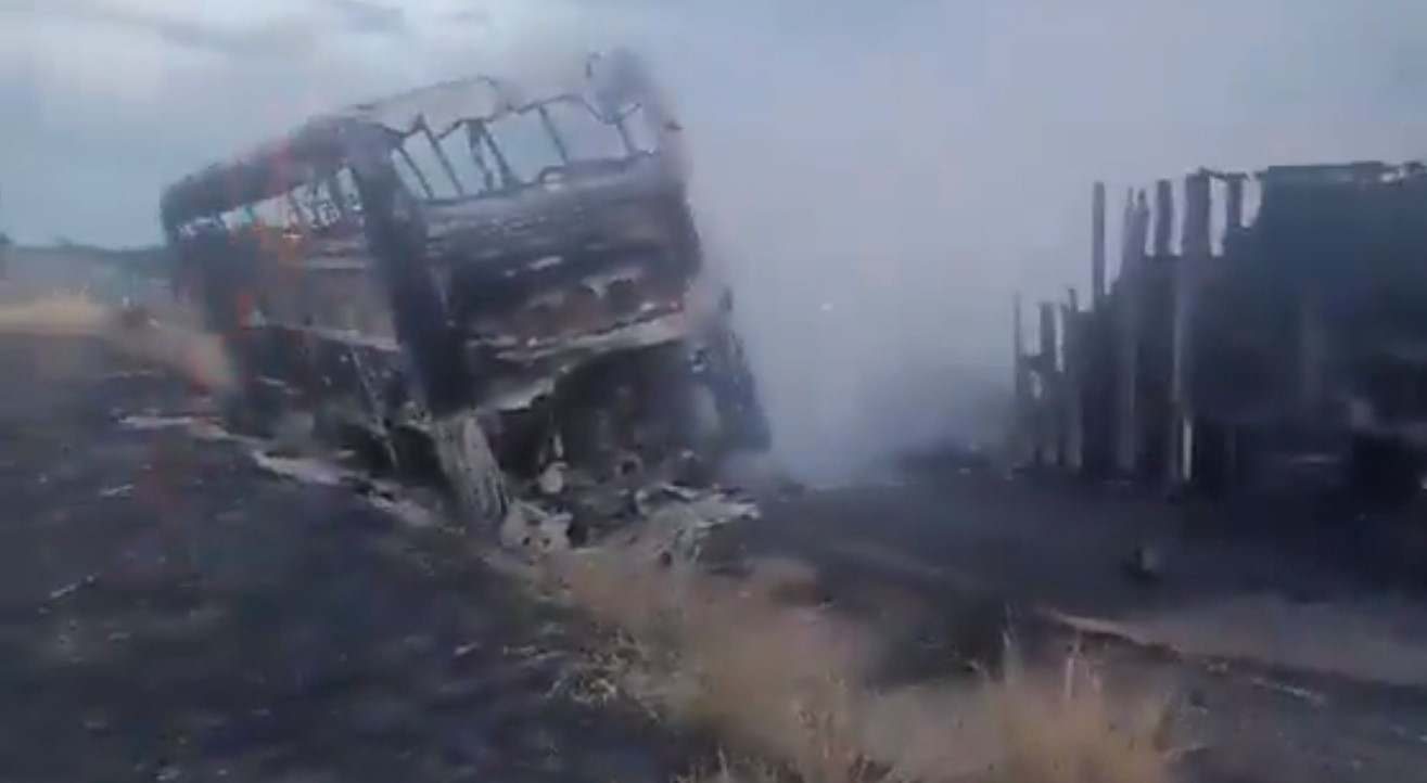 En la autopista Mazatlán-Culiacán, en la jurisdicción del municipio de Elota, un autobús con 37 pasajeros se impactó contra un tráiler y se incendió, por lo que de forma preliminar se notificó el fallecimiento de 22 personas.