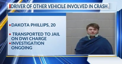 El conductor del otro vehículo, identificado como Dakota Phillips, de 20 años de edad, fue arrestado con cargos de conducción bajo los influjos del alcohol, y pendiente de la investigación, el departamento de policía declaro que pueden ser presentados cargos por homicidio involuntario.