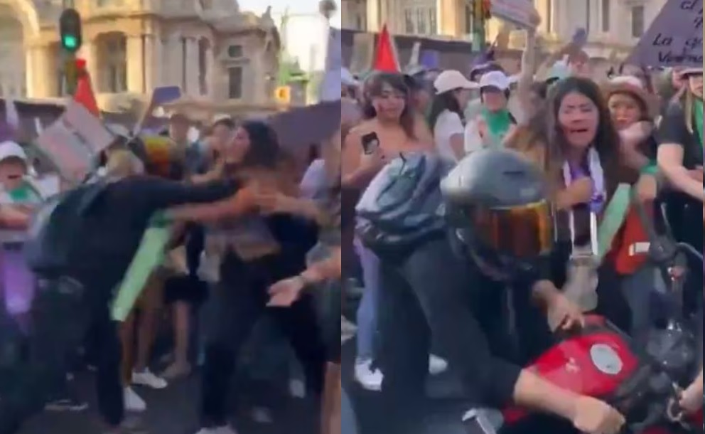 En la marcha pacífica del viernes 8 de marzo en la Ciudad de México, con motivo del Día Internacional de la Mujer, se registraron algunos incidentes como un enfrentamiento entre un motociclista y una chica integrante del movimiento feminista en el cruce de Eje Central y Juárez.
