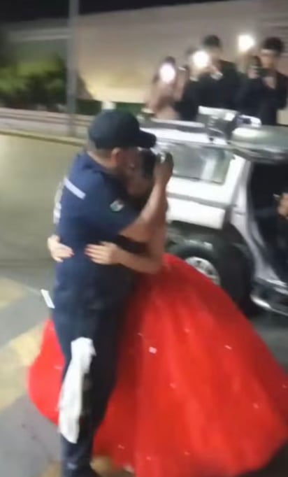 A través de las redes sociales se empezó a difundir un video en el que se ve a la joven de quince años, luciendo un deslumbrante vestido rojo y una corona, descender de una limusina para correr hacia su padre, quien se encontraba trabajando como despachador en una gasolinera y no pudo asistir al gran evento.