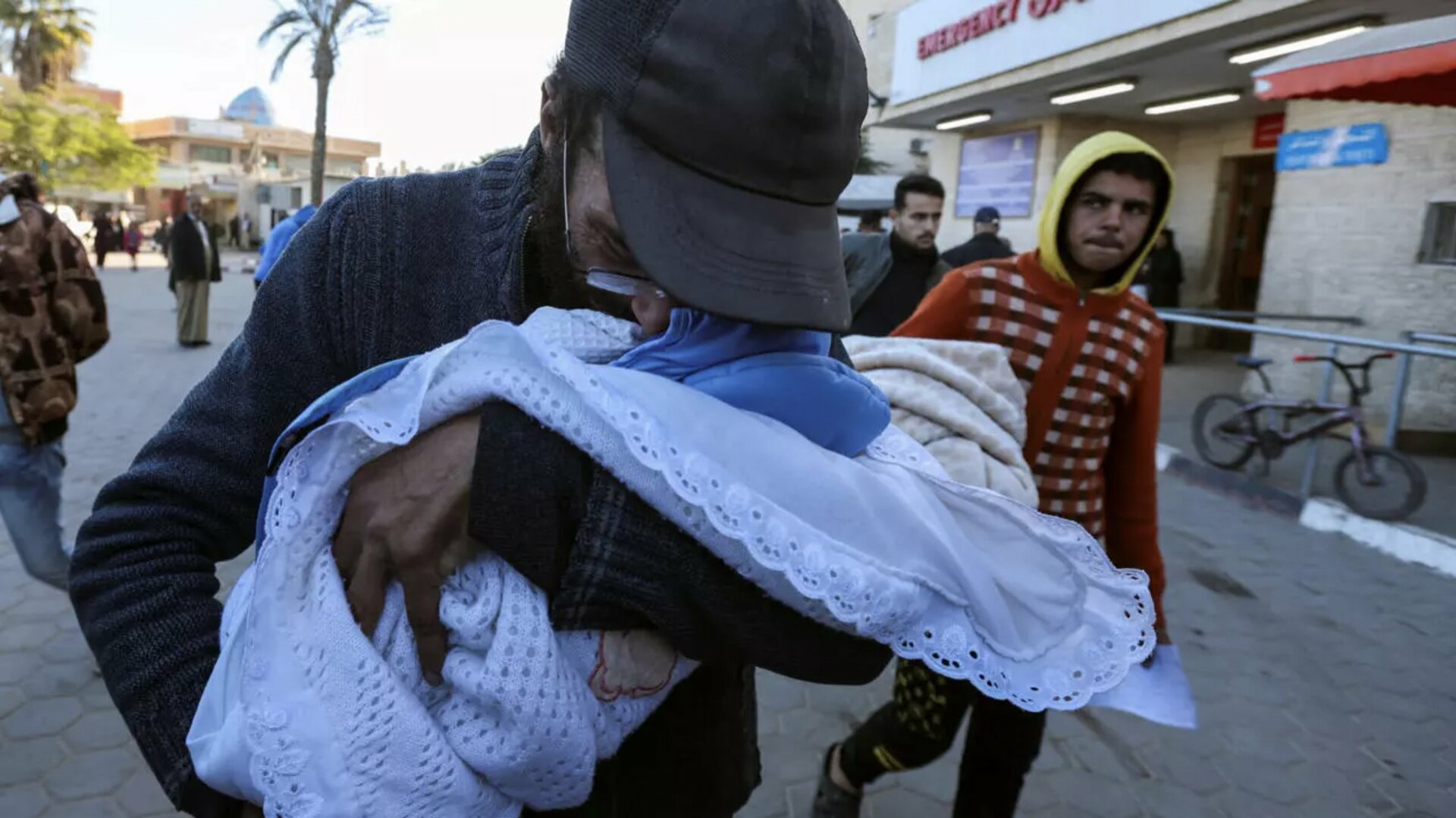Uno de los infantes fue identificado como Yousef Al Sambari, recien nacido de un mes, quien pereció en los brazos de sus padres dentro de una tienda de campaña en la zona humanitaria de Mawasi, en el sur de la Franja.
