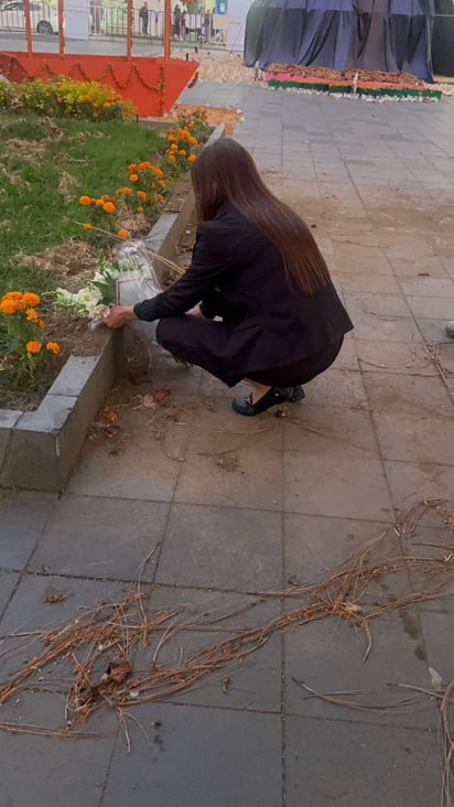 En la fotografía que compartió, se observa a Grecia Quiroz visitando la misma jardinera en la que fue asesinado Carlos Manzo el pasado 1 de noviembre, y llevando consigo un ramo de flores que colocó junto al cempasúchil que aún está en la zona.