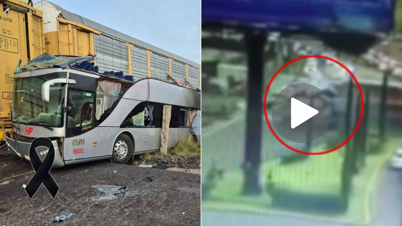 Un trágico hecho registrado la mañana de este lunes 8 de septiembre en el Estado de México, en el que estuvieron involucrados un autobús de pasajeros y un tren, dejó como saldo a por lo menos ocho personas sin vida y 45 personas lesionadas. El hecho quedó captado por cámaras de vigilancia en la zona.