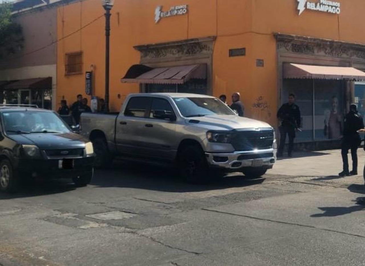 Inicialmente fueron agentes de la Policía Estatal quienes le marcaron el alto a una camioneta de la linea RAM, doble cabina, color plata, sin placas de circulación, que transitaba por la calle Zaragoza a la altura de la avenida 20 de Noviembre, donde comenzaron a revisar su interior y los datos de los tripulantes.