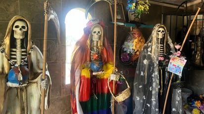 Unos metros más adelante se alza la capilla a la Santa Muerte, que recibe igual cantidad de ofrendas, entre las que destacan frutas, bebidas alcohólicas, cigarros, veladoras y flores. El altar destaca por la diversidad de colores en las imágenes, donde lo solemne se mezcla con la fe intensa de quienes acuden a pedir resguardo o favores.