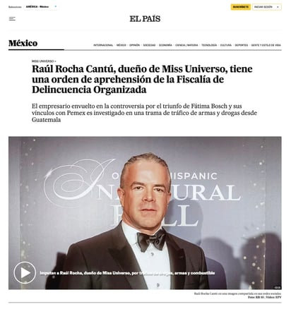 El País (España) reportó que la Fiscalía mexicana de Delincuencia Organizada giró una orden de captura contra el empresario, destacando tanto la gravedad de los delitos como la repercusión mediática por tratarse de un propietario de Miss Universo.