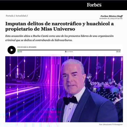 Latin Times también dio cobertura amplia al caso, destacando los presuntos delitos y el impacto que la acusación podría tener en los activos empresariales de Rocha Cantú, incluido su rol en el certamen.
