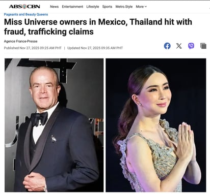 En Filipinas, uno de los países con mayor seguimiento al certamen, la noticia fue retomada por ABS-CBN y Rappler, que la contextualizaron como “una investigación que alcanza a un propietario clave de la organización”.