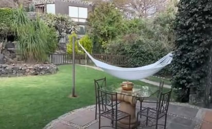 En el recorrido, el Presidente del Senado muestra de forma rápida la cocina y el comedor, seguido de un gran jardín con un comedor exterior, una hamaca y una vista a la montaña.