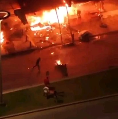 Mientras que en otro video se puede ver como una persona sale del lugar, con fuego en varias partes de su cuerpo y personas que se encontraban cerca lo ayudan apagándolo.
