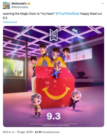Esta no es la primera ocasión en que la marca y la agrupación trabajan en conjunto. En 2021, McDonald’s lanzó el “BTS Meal”, un combo que incluía McNuggets, papas y salsas coreanas, mismo que se agotó en horas en distintas ciudades mexicanas.