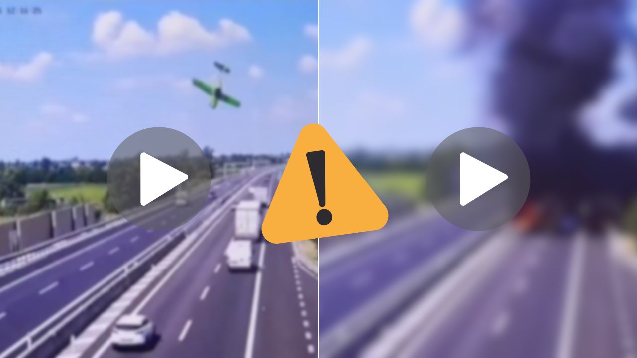 En redes sociales, un video se ha vuelto viral en las últimas horas, pues una cámara captó el momento exacto en el que la avioneta se estrelló contra el pavimento de la carretera de Italia.
