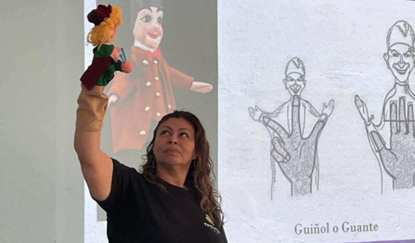 Perla Mapula, integrante de la compañía de títeres Teteutzin "Artes Vivas", impartió a alumnos de la escuela primaria Petra Andrade Salmerón el taller "Lo que se cuenta en mi comunidad", dirigido a niñas y niños, como parte del programa "Alas y raíces en tu escuela", el cual busca acercar a los infantes al arte y la cultura, así como fomentar sus valores.