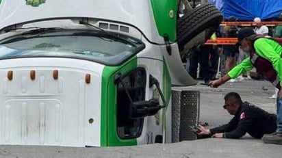 De acuerdo con versiones preliminares no oficiales, la pesada unidad circulaba por una de las calles de la zona cuando el pavimento colapsó repentinamente, provocando que el vehículo quedara atrapado en un enorme agujero. El incidente generó alarma entre vecinos y automovilistas que transitaban en ese momento.