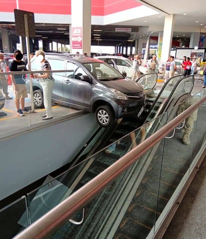 De acuerdo con los primeros reportes de las autoridades, la conductora del vehículo, una mujer de aproximadamente 50 años, habría confundido el pedal del freno con el del acelerador. Este error la llevó a perder el control dentro del área del estacionamiento, impactar con una barandilla y descender abruptamente por la estructura hasta ingresar al corazón de la plaza, donde las escaleras eléctricas fungieron como una especie de rampa involuntaria.