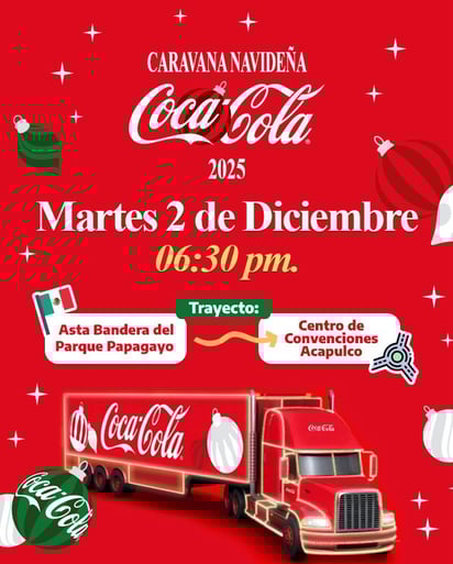 Hasta ahora, las ciudades que han sido confirmadas dentro de los planes de la Caravana Coca-Cola 2025 son Acapulco y Mexicali.
