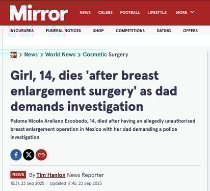 El fallecimiento de Paloma Nicole, de 14 años de edad, tras complicaciones debido a una cirugía estética en Durango, empezó a rebotar fuera de México.