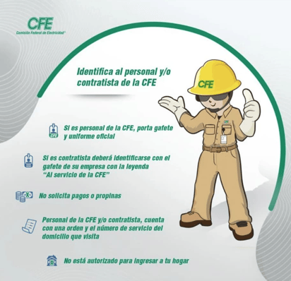 En días recientes, comenzaron a circular en redes sociales diversos reportes de fraudes relacionados con supuestos operativos “casa por casa” de la Comisión Federal de Electricidad (CFE). Con esto, surge la necesidad de saber identificar a los trabajadores de esta empresa, y así evitar caer en estafas.