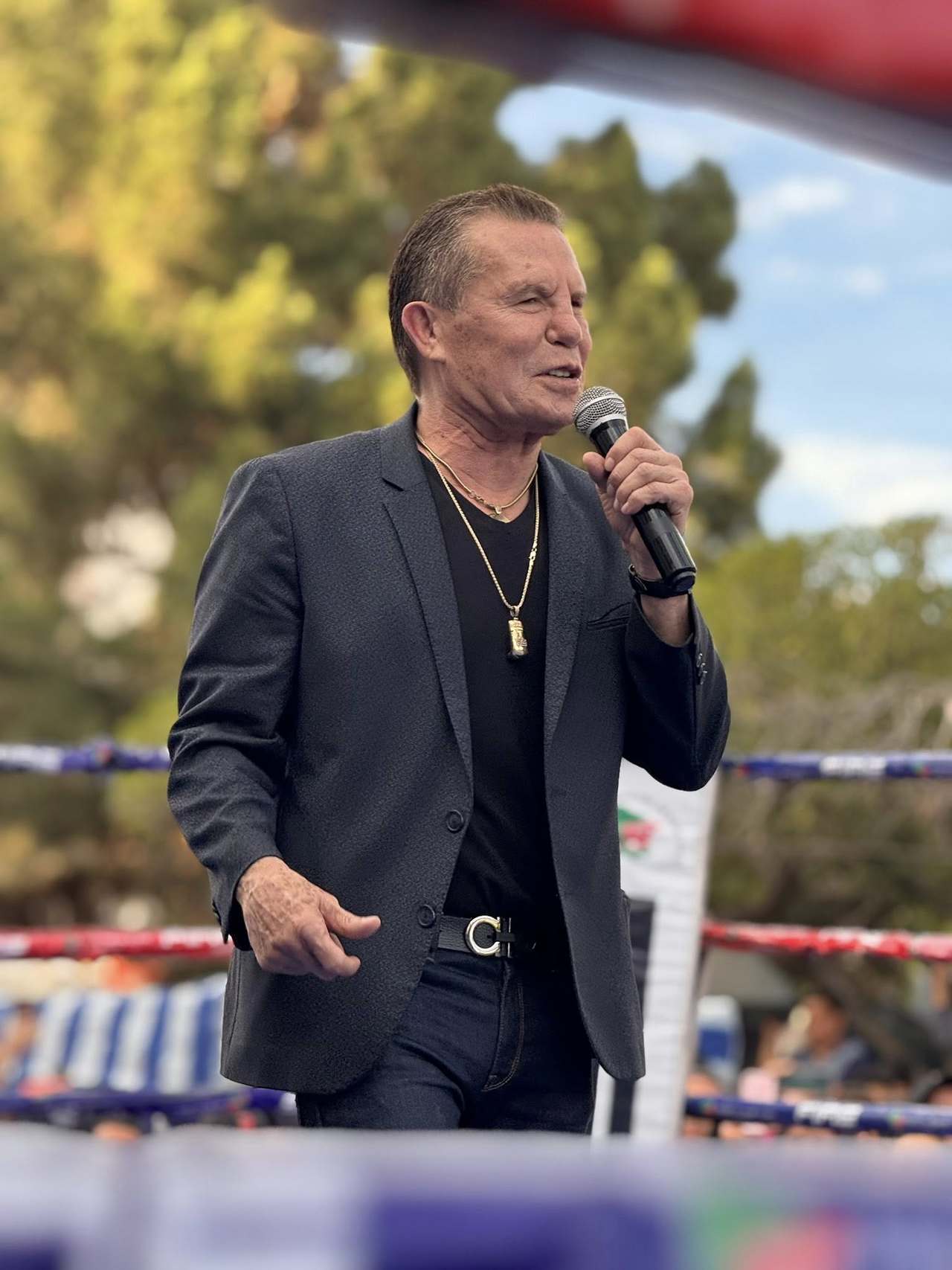 Declaración. Julio César Chávez, leyenda del boxeo mexicano, habló para medios en su llegada a México y compartió la difícil situación de su hijo, Julio César Chávez Jr., detenido en Los Ángeles por agentes del ICE.