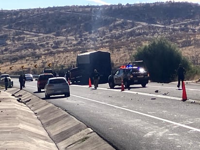 En el lugar del reporte, por la carretera antes mencionada a unos kilómetros de la caseta de Garabitos, se encontraba una camioneta pick up en color rojo, que impactó en un costado de un tráiler, quedando completamente destruida en el lado del copiloto.