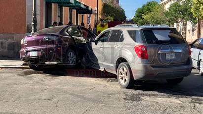 Choque en Zona Centro de Durango deja fuertes daños materiales en dos vehículos