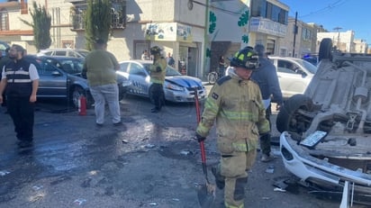 El hecho ocurrió cerca de las 10:00 horas, cuando dos vehículos impactaron a unidad del transporte público habilitada como taxi, provocando que volcara y quedara sobre sus cuatro llantas.