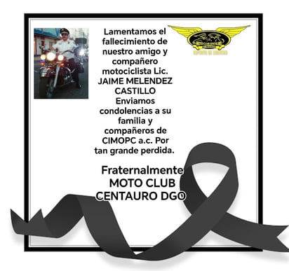 Después se unió el Motoclub Centauro de Durango, con quienes Jaime habría compartido algunas rutas y convivios.