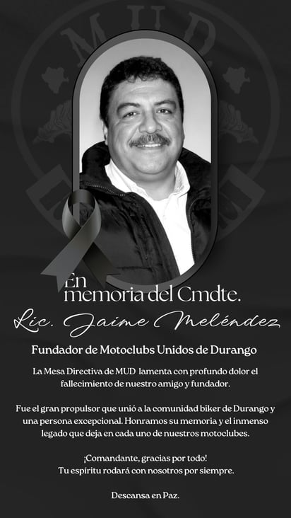 Lycans Bike Crew recordó que Meléndez fue un gran propulsor para que la comunidad biker en Durango se uniera, además de ser una excepcional persona.