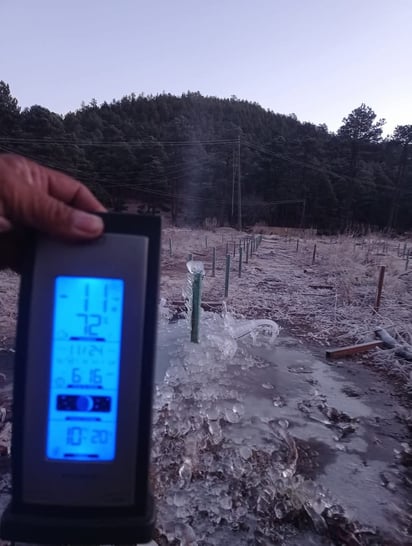 Fotografías publicadas a redes sociales por Jorge Reyes, conocido como El Sembrador de la Sierra, muestran cómo el agua se congeló en toda esa parte alta de Guanaceví, incluso mostró una del termómetro cuando este se encontraba todavía en 11 bajo cero, pero todavía bajó tres grados más.
