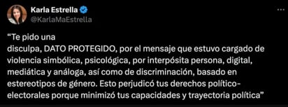 Si bien agradezco que se haya reconocido que esto constituyó violencia política en razón de género, coincido en que desde la primera disculpa el agravio quedó saldado.