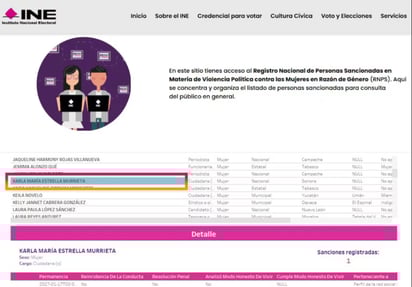 En el registro de violentadores del Instituto Nacional Electoral (INE), se detalla que Estrella Murieta permanecerá inscrita hasta el 17 de enero de 2027 por haber escrito en su cuenta personal lo siguiente: