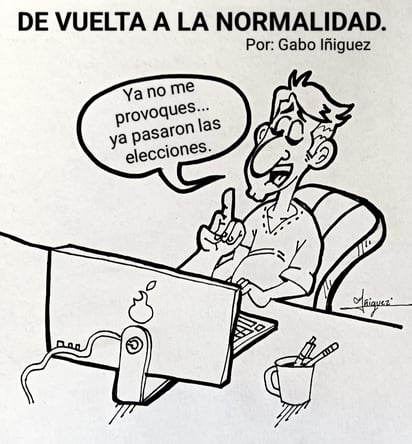 Escrito en: Gabo Iñiguez elecciones 2025 Cartón de Gabo Iñiguez vuelta, normalidad',, cartón, Gabo