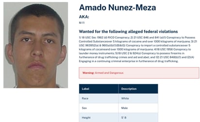 El más mediático de la lista; Amado Núñez Meza, alias ‘El M-11’, es identificado por la DEA como uno de los operadores clave del Cártel de Sinaloa en el norte del país. Su historial criminal está vinculado a la facción de Los Cabrera, brazo armado y logístico del cártel en Durango, con fuerte presencia en municipios como Tamazula, Canelas y Santiago Papasquiaro.