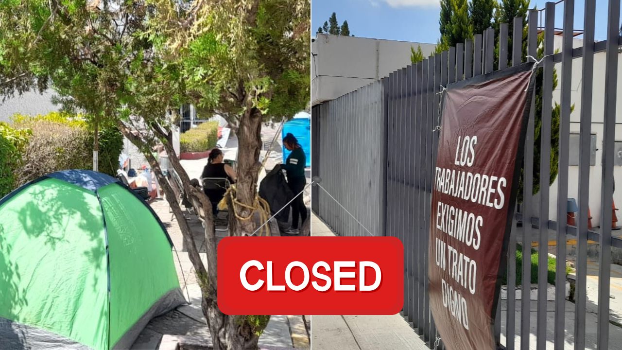 En el lugar ya cuentan con baño portátil, mesas y gas para preparar alimentos. Las lonas con mensajes de protesta continúan colocadas tanto en la entrada principal como en el acceso por el estacionamiento.