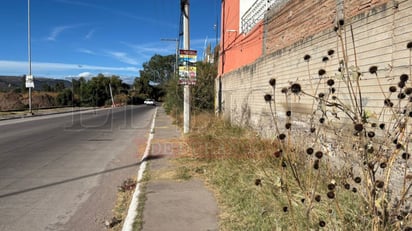 Habitantes de El Saltito y Colinas del Saltito piden la intervención de Servicios Públicos Municipales para limpiar de maleza y basura las banquetas sobre bulevar LaSalle, que les impiden caminar rumbo a su hogar o trabajo.