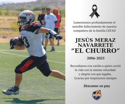 A través de su página de Facebook, la Conferencia Estudiantil de Football Americano Durango AC (Cefad) externó sus condolencias a la familia.