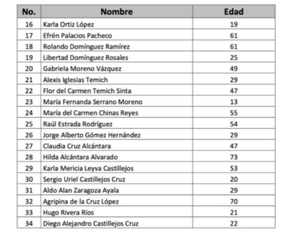 Por su parte, la Secretaría de Gobernación actualizó la lista de personas hospitalizadas, donde se encuentran 34 nombres; no obstante, la Semar indicó que son 36.