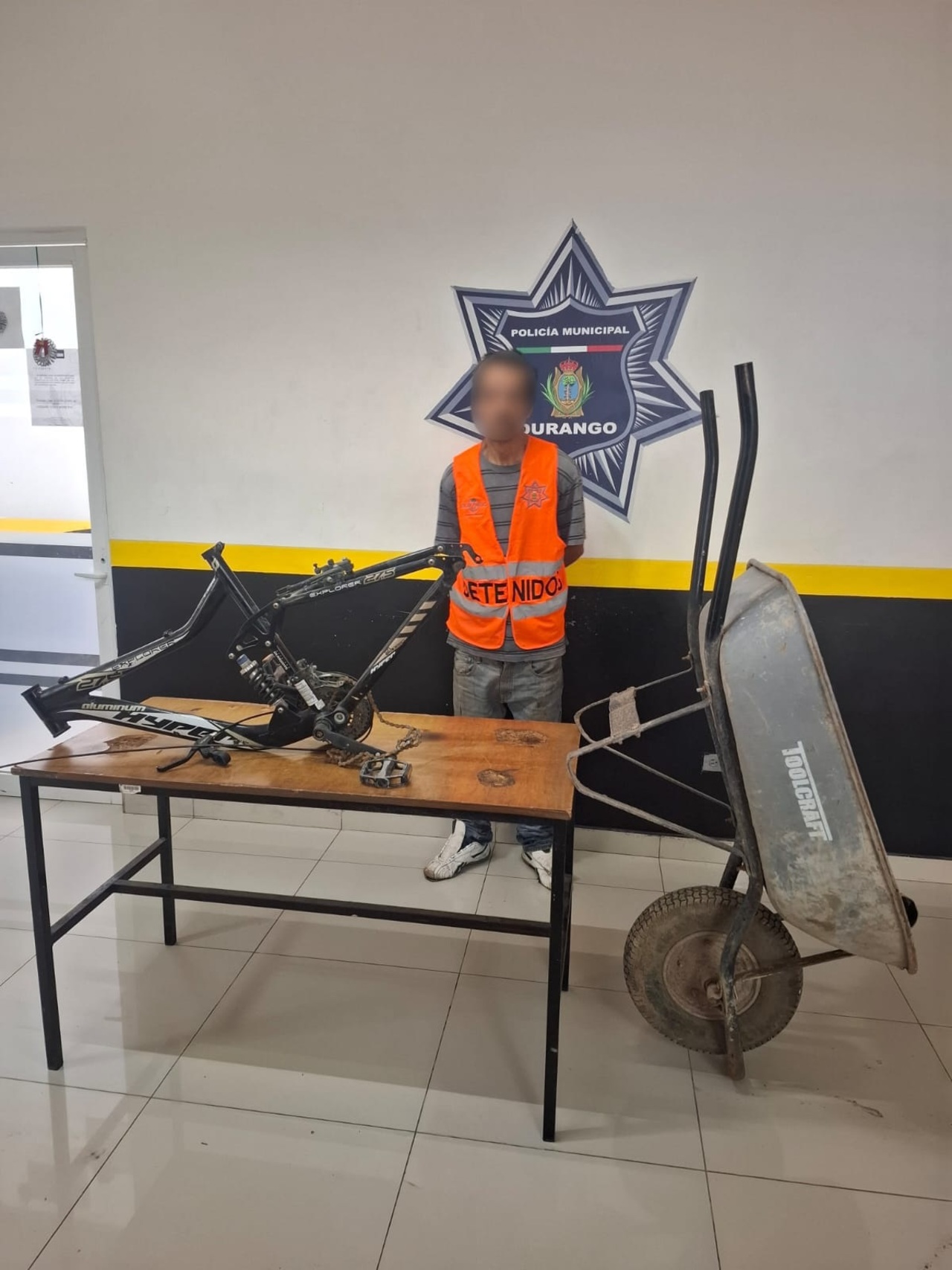 Elementos de la Policía Preventiva se encontraban en un recorrido de prevención y vigilancia; acudieron a un domicilio de la colonia Maderera, donde una persona del sexo femenino señaló a Alejandro, de 50 años de edad, de haberse introducido a su domicilio sin autorización alguna y sustrajo una carretilla de color gris y un cuadro de bicicleta con la leyenda Explorer, mismos que le fueron asegurados por los oficiales preventivos al momento de su detención en las calles Puerto Frontero entre, Puerto Chetumal y Puerto Acapulco.