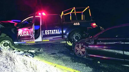En el carril con sentido de la carretera a México hacia la carretera a Gómez Palacio ocurrió la colisión entre una patrulla de la Policía Estatal y una camioneta Chevrolet Silverado, donde dos elementos de seguridad y el conductor del vehículo particular resultaron heridos.