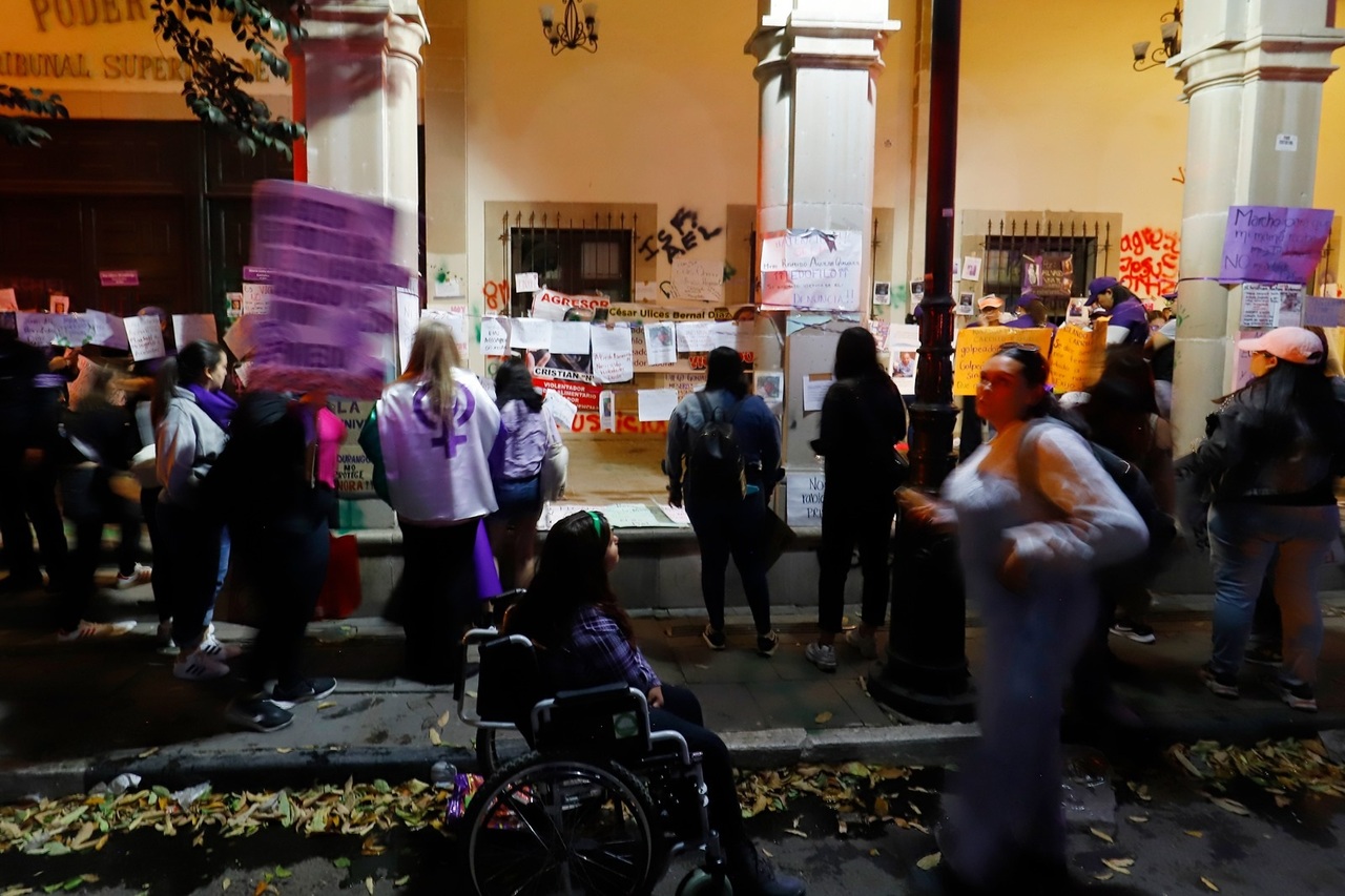 Los mensajes de denuncia y pancartas colocadas en el Tribunal Superior de Justicia tras las acciones de protesta y manifestación de mujeres luego de la marcha del 8M continuaban hasta la tarde de ayer.