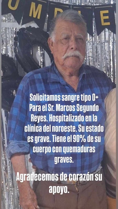 En medio del luto que se vive en Hermosillo tras la explosión de una tienda Waldo’s que dejó a más de 20 personas sin vida, han comenzado a surgir historias de algunas de las víctimas, entre ellas de algunos que resultaron lesionados. Una de ellas es la de don Marco Segundo, un adulto mayor quien a pesar de presentar quemaduras en el 90 por ciento de su cuerpo, continúa luchando.