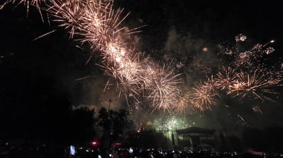 Después de escuchar la tradicional arenga de ¡Viva México! y ¡Viva Durango!, los fuegos artificiales iluminaron el cielo bajo la mirada de los asistes, que, con emoción, vivieron la representación del inicio de la Independencia.