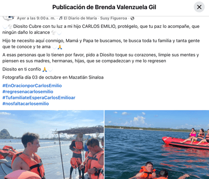 La incertidumbre sobre dónde está Carlos Emilio continúan, sin embargo, su mamá sigue realizando cadenas de oración para su pronta localización.