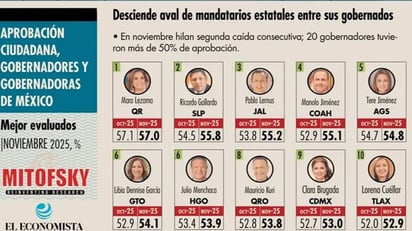 Estos son los gobernadores mejor evaluados en noviembre 2025, según el Ranking MITOFSKY