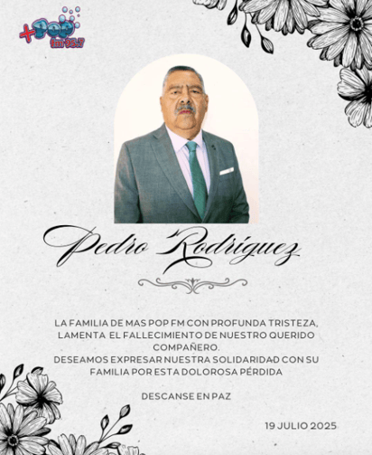 La mañana de este sábado 19 de julio, se dio a conocer el lamentable fallecimiento del comunicador duranguense Pedro Rodríguez, quien durante años formó una amplia carrera en diversos medios de la ciudad.