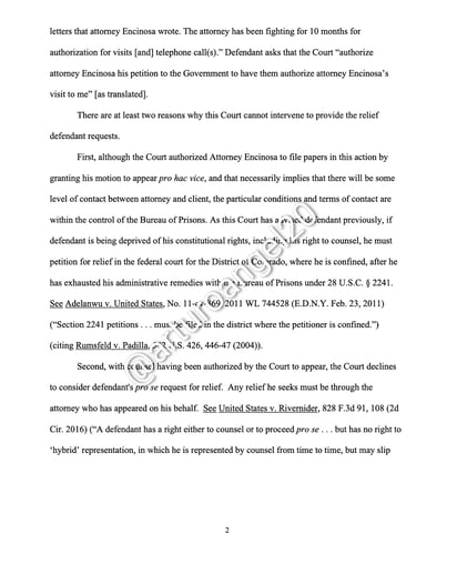 En el documento, con extensión de dos cuartillas, el juez asegura que no le permitirá esto porque NO ES su jurisdicción, por lo que tendrá que ver este tema con el Buró de Prisiones o la Corte de Colorado.