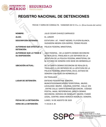 Según la información de El Financiero, en caso de que Chávez Jr. sea vinculado a proceso, el Juez Federal deberá determinar una fecha para la audiencia de su posible sentencia.